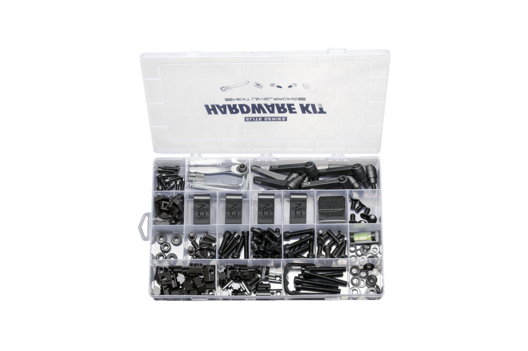The Next Level Racing® Elite Hardware Kit is the perfect addition for any user that requires more hardware for your elite range cockpit or your do-it-yourself project for their do-it-yourself projects. With a wide range of bolts and T-nuts, the user has the option to add extra aluminium extrusion to their cockpit for the most customized simulation experience. The Next Level Racing® Elite Hardware Kit comes with a multitude of different fasteners, fixings, and tools to take your setup to the next level. The quality of components can be seen in other Elite products with the same amount of attention and detail.